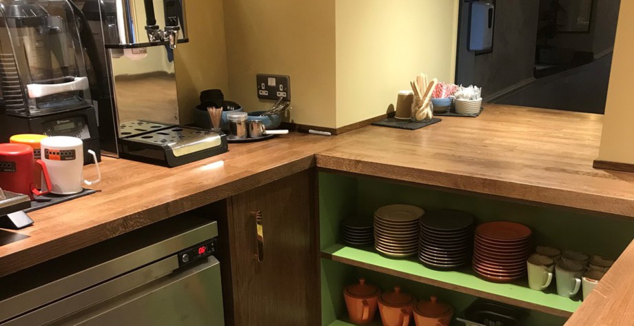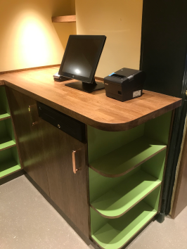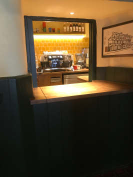 We manufactured and installed this new coffee shop in a hotel bar area